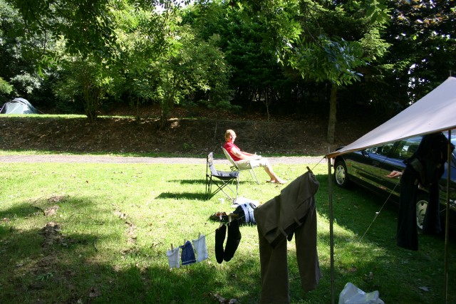 Onze camping lag op de Kemmelberg, dus klimmen geblazen. We hadden een plek in het bos.